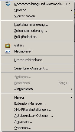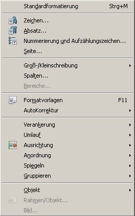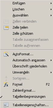 Zu welchen Menus gehören die folgenden Unterpunkte?