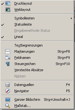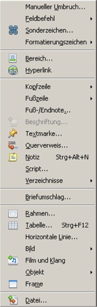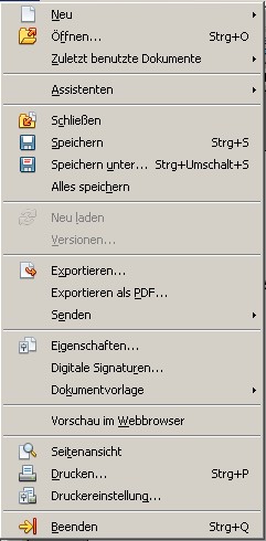 Zu welchen Menus gehören die folgenden Unterpunkte?